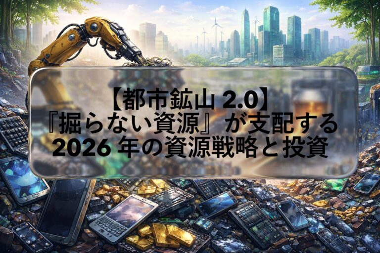 世界的な脱炭素化の加速に伴い、リチウムやコバルト、そしてネオジムといったレアアースの確保は、一国の産業競争力を超え、国家安全保障の根幹を揺るがす喫緊の課題となりました。特定国への資源依存が地政学的リスクとして顕在化するなか、2026年を境界線として、世界は「掘る資源」から「回す資源」へとその力学を劇的に変化させようとしています。これこそが、今回解説する「都市鉱山 2.0」の到来です。 投資家にとっ […]