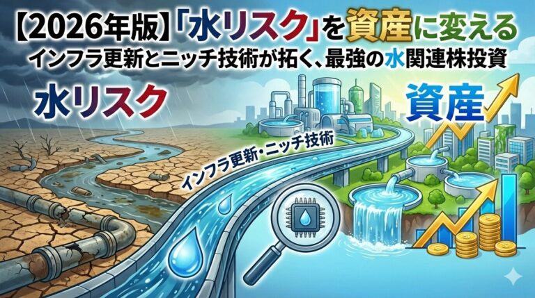 かつて「水」は、蛇口をひねれば安価に手に入る当たり前の存在でした。しかし2026年現在、その定義は塗り替えられています。水はもはや単なる公共インフラではなく、ハイテク産業の命運と国家安全保障を左右する「戦略的資産」へと変容したのです。 なぜ今、水ビジネスの付加価値がこれほどまでに高まっているのか。そこには、投資家が無視できない「3つの巨大な波」があります。 さらに日本国内では、より切実な「インフラ […]